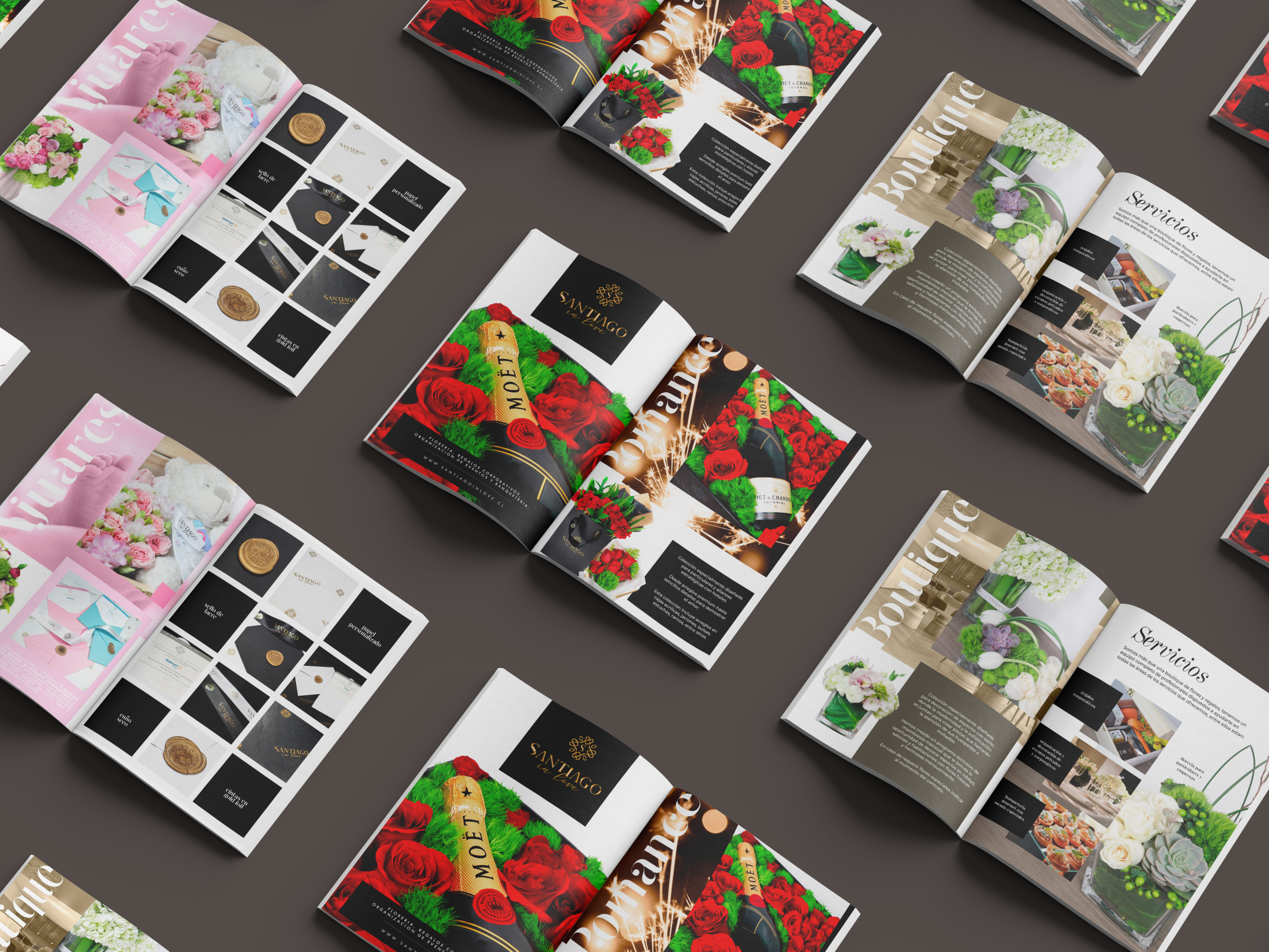 Santiago in Love is a floral boutique based in Santiago de Chile, focused on curated arrangements, elegant compositions and a refined, contemporary aesthetic. The brand needed a complete visual identity that captured its sophisticated and romantic character while presenting its products with clarity and warmth.